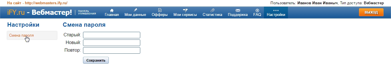 Где изменить пароль для входа в личный кабинет?